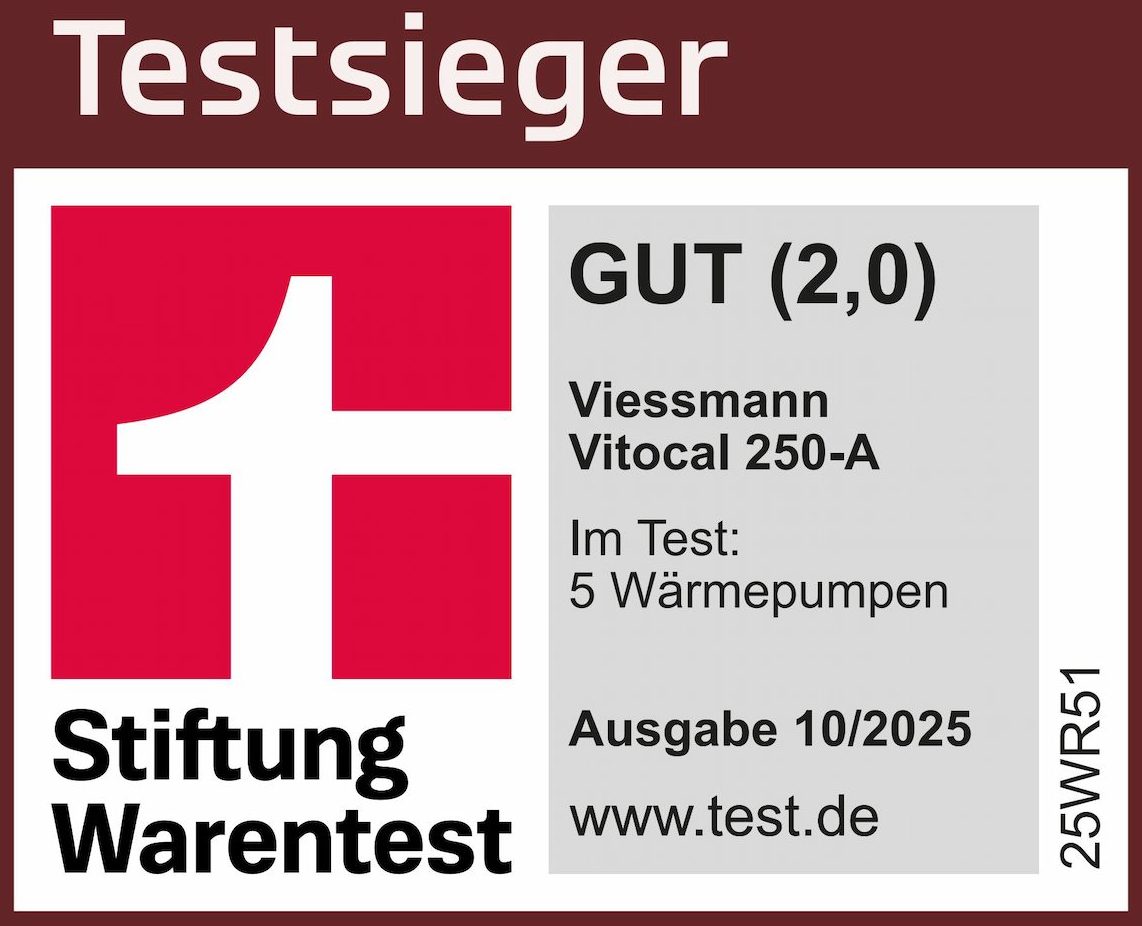 Ausgezeichnet! Die Viessmann-Wärmepumpe 250-A wurde erneut von Stiftung Warentest als Testsieger prämiert.